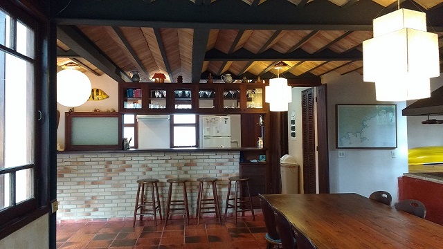 - Sala de estar e jantar, conjugada com cozinha e bar, fogão a lenha, 1 geladeira duplex e frigobar, fogão de 6 bcs, microondas, despensa, varanda com churrasqueira, 4 cadeiras de praia e estacionamento p/ 4 veículos.