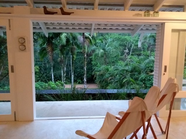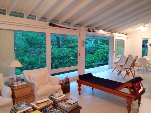 - Sala de estar com sofá e lareira, TV e Wi-fi, mesa de apoio com aparelho de som para plugar smartfone, 1 chase, mesa redonda com 2 cadeiras de lona.