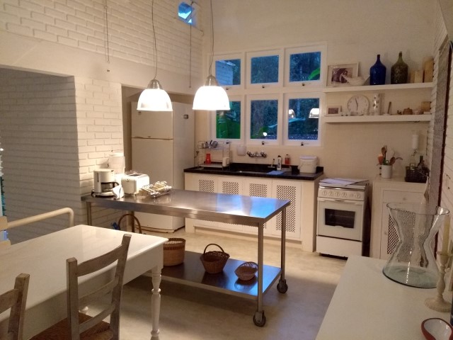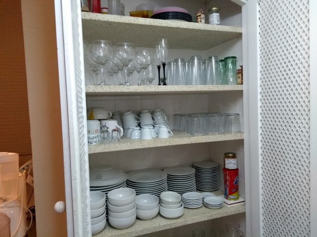 - Cozinha com mesa de jantar, 1 Geladeira duplex, microondas, fogão 4bc, churrasqueira portátil, secadora, 5 cadeiras de praia e 1 guarda sol