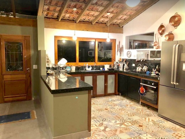 - Copa/cozinha, 2 geladeiras, 1 freezer, fogão 6 bcs, lava-pratos e microondas.