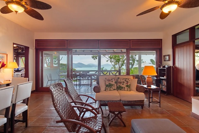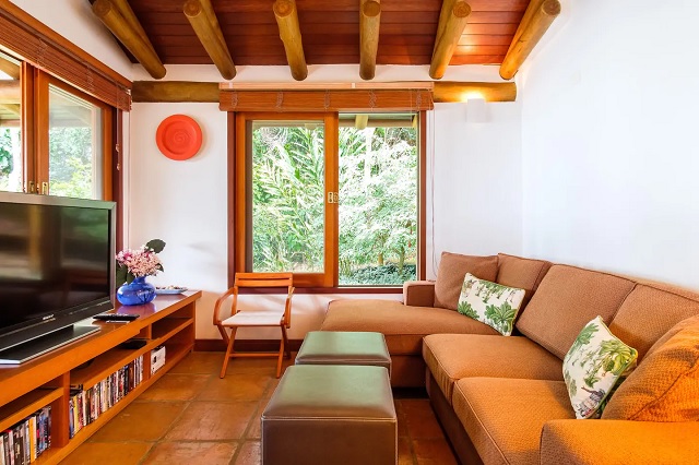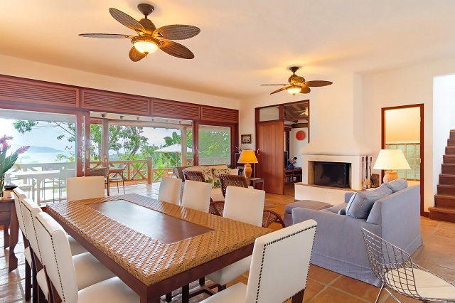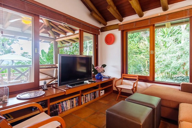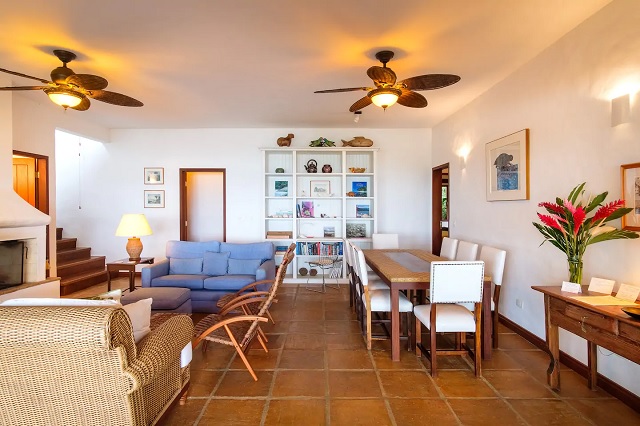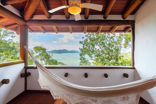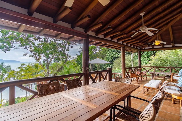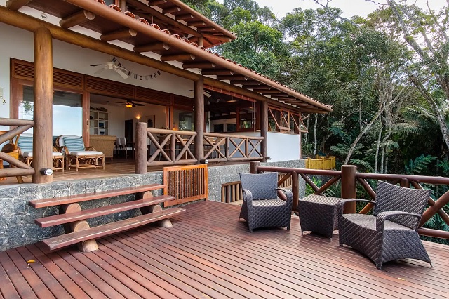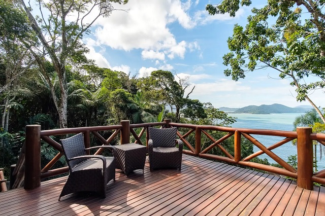 • sala e deck com vista para o mar
