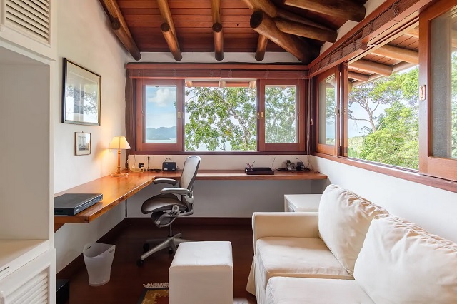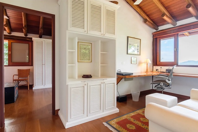 • 1 suíte (queen) no andar superior com escritório, Wi-Fi e deck