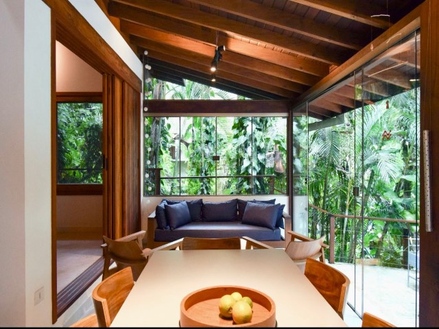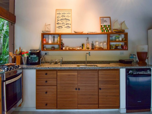 • Sala de jantar e cozinha, 1 geladeira duplex, fogão 4b, microondas, lava e seca e demais utensílios de cozinha, travesseiros e cobertores, Não contempla roupas cama e banho .