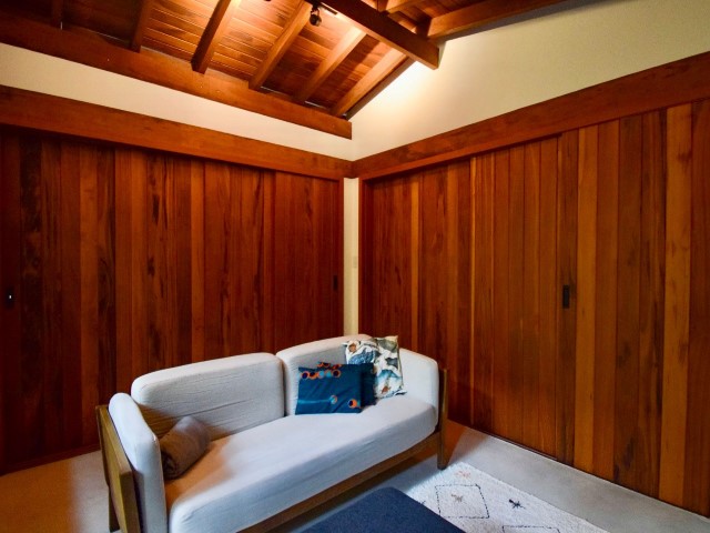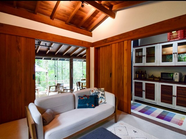 • Sala de tv reversível com 2 colchões de solteiro, tv com Google Chromecast e wi-fi fibra de alta velocidade.