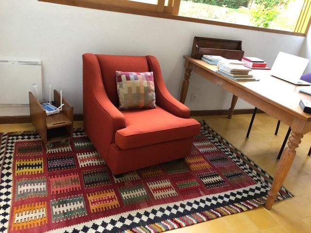- Escritório com mesa, poltrona, cadeira e Wi-Fi.