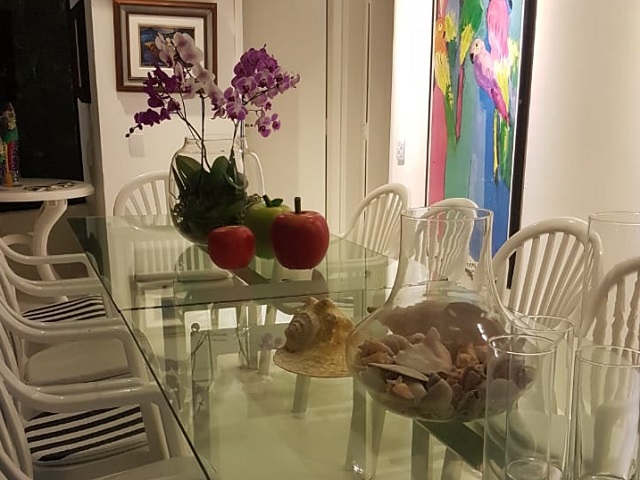 - Sala de estar com sofás, tv e wi-fi, conjugada com jantar, Travesseiros e Mantas (não tem roupas de cama e banho).