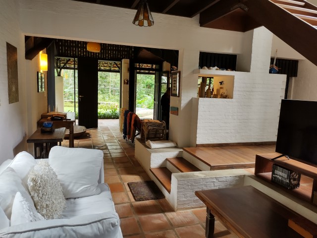 - Sala de jantar, estar e lareira com sofás, wi-fi e hall com sofá e TV