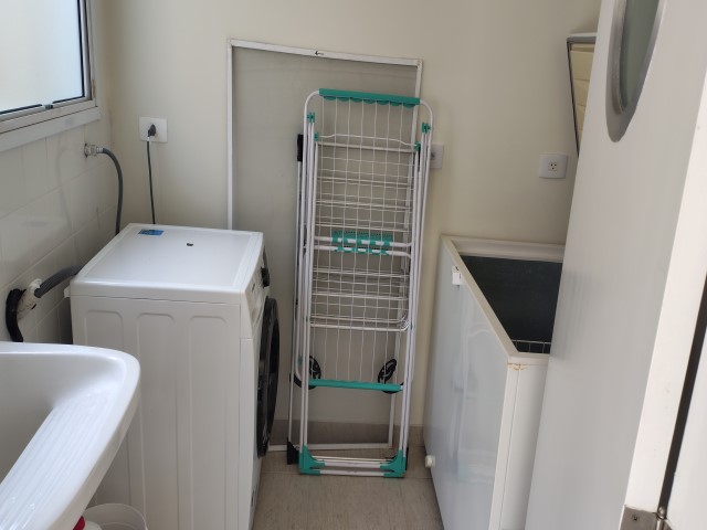 - Lavanderia com lava-roupas, tanque e varais portátil