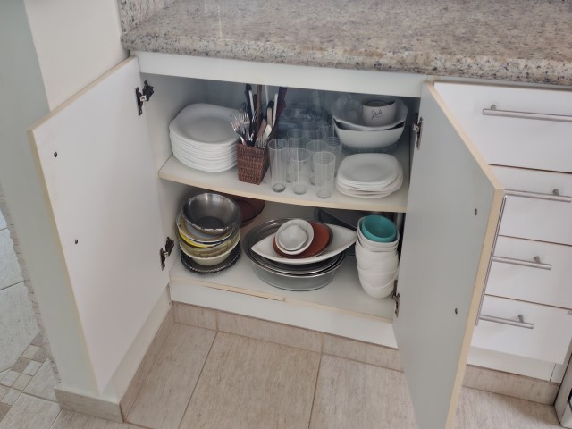 - Cozinha c/ 1 geladeiras duplex, freezer, fogão de 4 bcs, micro-ondas, cafeteria e lava-pratos