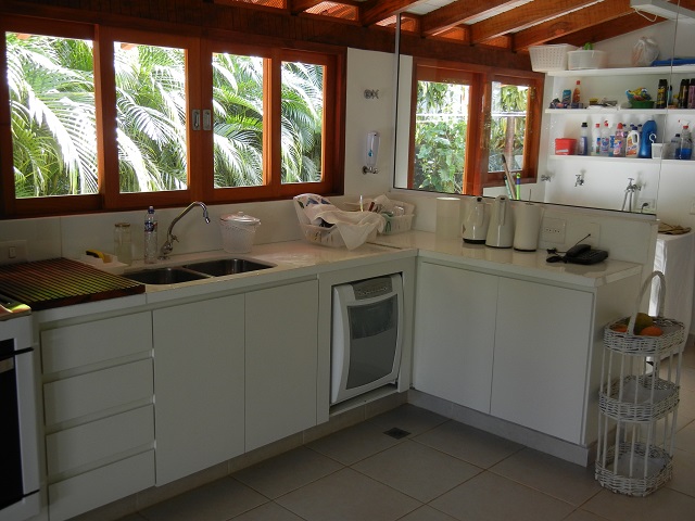 - Cozinha com armários, geladeira, freezer, fogão de 6 bcs, lava-louças, micro-ondas, sanduicheira e demais utensílios de cozinha.