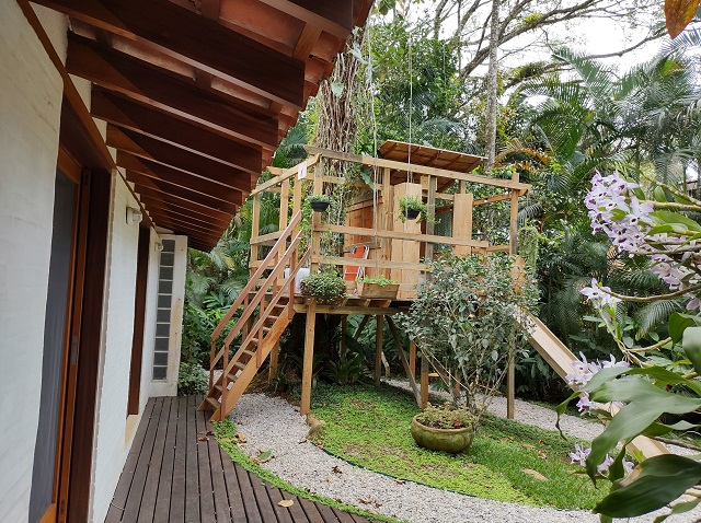 - Jardim em toda periferia da casa, e casinha na arvore.