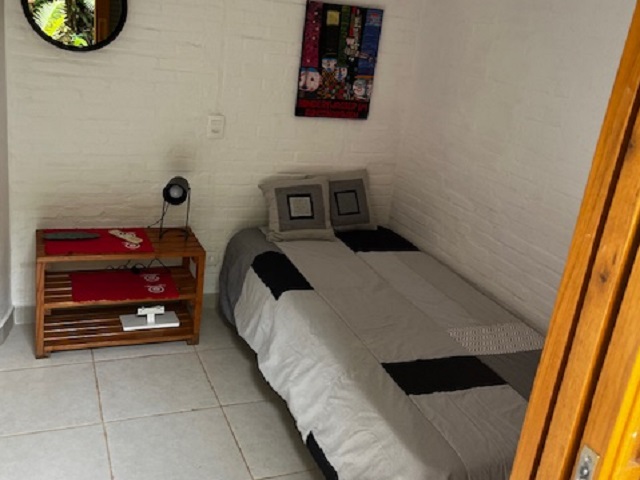 - 1 mini-suíte com acesso pelo jardim com cama de solteiro e TV
