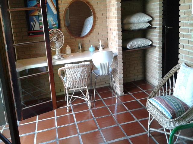 - Sala de estar e jantar conjugada com lareira, TV e Wi-Fi, varanda, cozinha c/ 1 geladeira, 1 freezer, fogão 4bc, liquidificador, espremedor de laranja, 2 ventiladores comum, 3 cadeiras de praia, churrasqueira portátil, microondas e demais utensílios de cozinha.