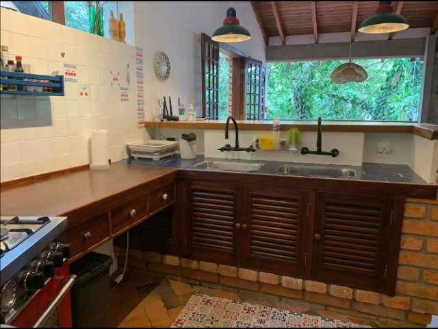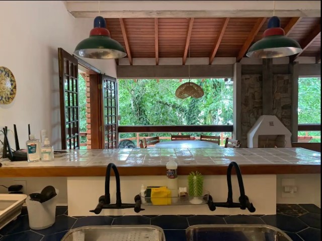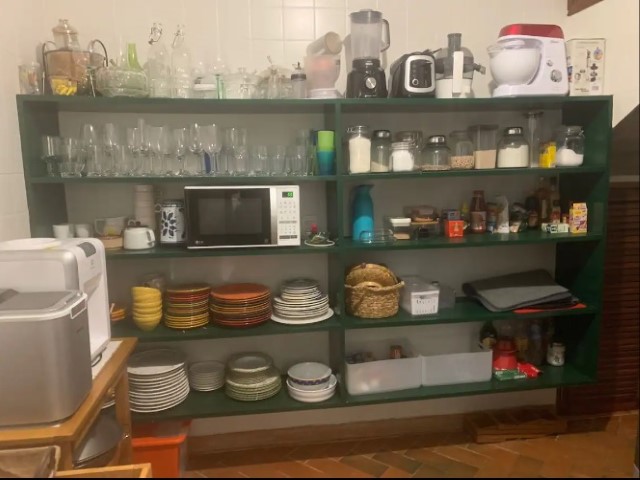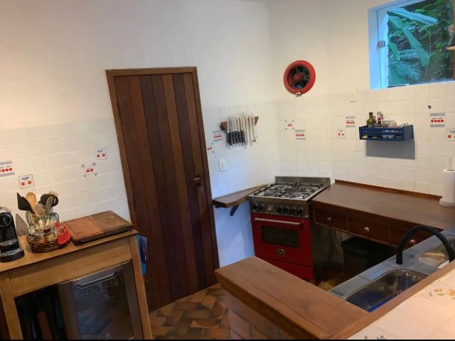 - Sala de estar c/ jantar, conjugada com cozinha e balcão/bar, Wi-Fi (NÃO TEM TV), 2 geladeiras (duplex), fogão 4 bocas, microondas, lava-pratos, maquina de gelo, Nespresso, despensa com demais utensílios de cozinha, churrasqueira portátil, lavanderia c / lavadora de roupas e secadora, 5 cadeiras de praia, garagem 1 veículo, estacionamento na rua que é particular.