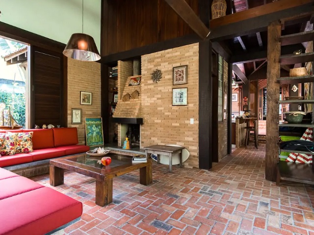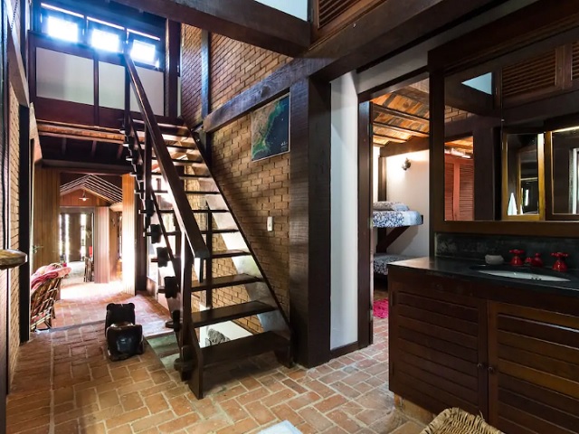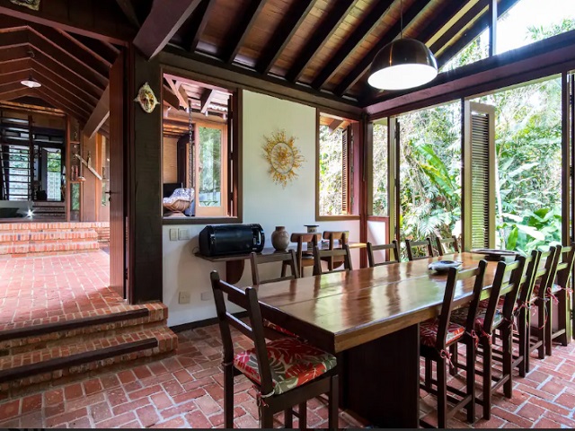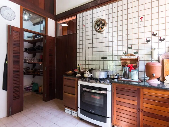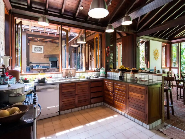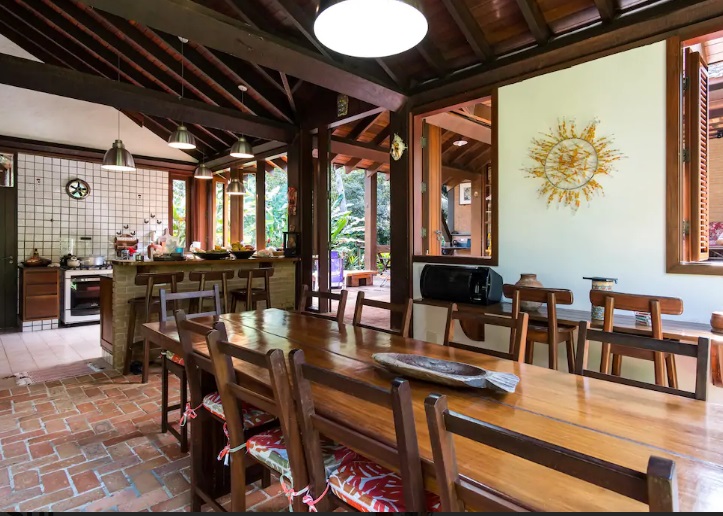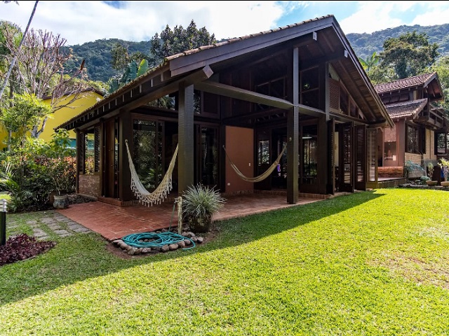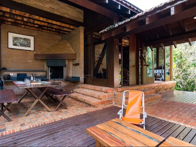 - Varanda com 3 redes, sala de estar c/ sofás e lareira, lavabo, sala de jantar conjugada cozinha e bar, 2 geladeiras duplex, fogão de 6 bcs, lava-pratos, micro-ondas, despensa, lavanderia com 1 freezer, lavadora e secadora de roupas, 5 cadeiras de praia e estacionamento p/ vários veículos, churrasqueira com mesa, bancos e jardim.