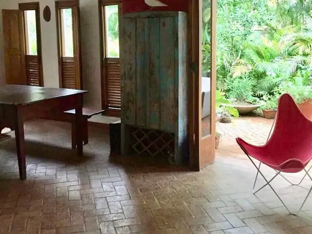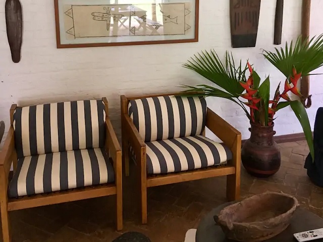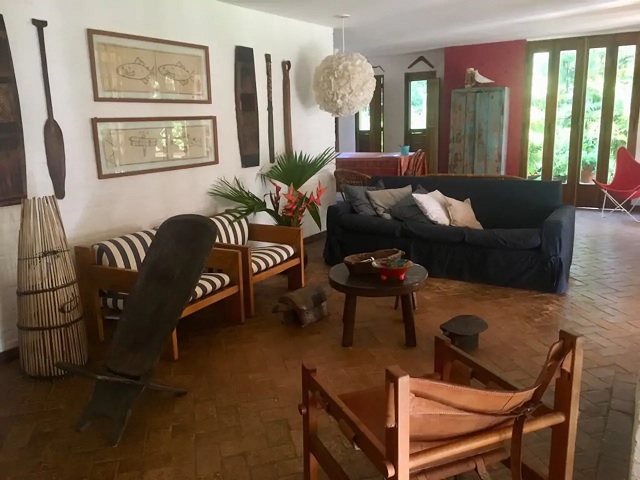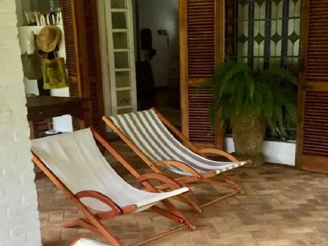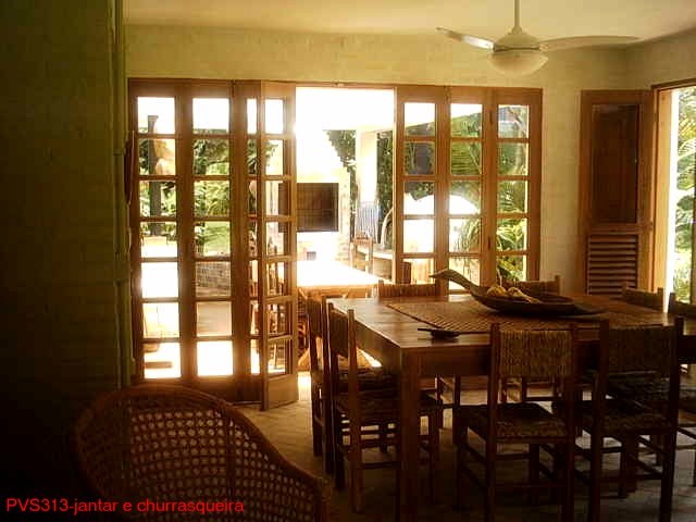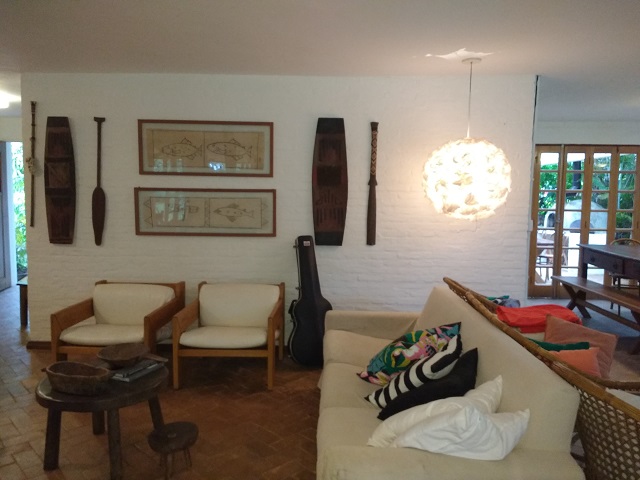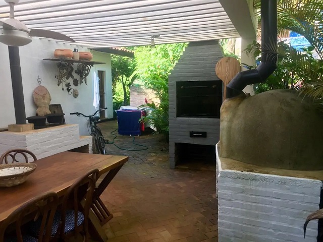 - Sala de estar com sofás, lareira, TV e Wi-Fi, conjugada com jantar, 2 geladeiras, fogão de 6bcs, micro-ondas, churrasqueira e forno a lenha, varanda com mesa, bancos e redes, mesa de ping-pong, 5 cadeiras de praia e demais utensílios de cozinha, amplo jardim dando para o mar, estacionamento p/ vários carros.