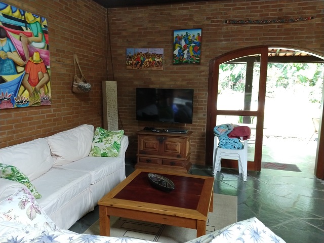 - Sala de estar com sofás, tv e wi-fi, conjugada com jantar e lareira, Ventiladores de Teto, Travesseiros e Mantas (não tem roupas de cama e banho).