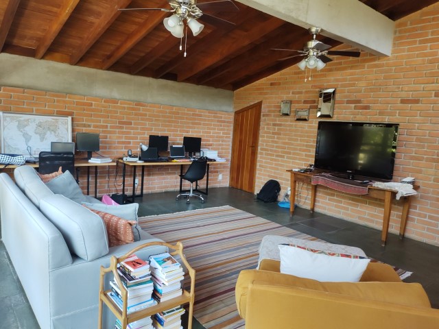 - Com TV e Wi-Fi, 2 ventiladores de teto, sofás, poltronas, mesa de centro e bancada para notebook