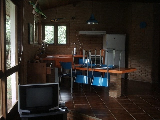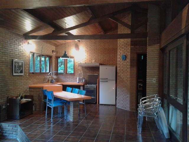 - Sala de estar com sofás fixos e TV, conjugada com jantar e cozinha com despensa, 1 geladeira duplex fogão de 4 bcs, liquidificador e demais utensílios de cozinha,