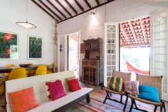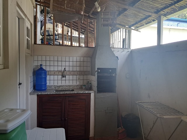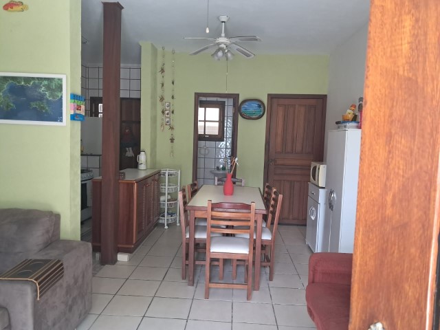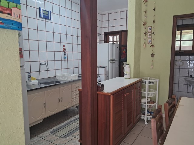 - Sala de estar com sofá, TV e wi-Fi, ventilador de teto, conjugada com jantar mesa para 6 pessoas e cozinha, 2 geladeiras duplex, fogão 4bc, microondas, liquidificador, sanduicheira e demais utensílios de cozinha e filtro, lavabo, área de serviço com lava-roupas, churrasqueira, mesa com 4 cadeiras e 5 cadeiras de praia e carrinho,